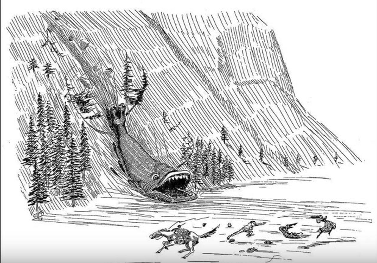 The Slide Rock Bolter- A huge land whale like creature that lives on mountain slopes waiting for unsuspecting passing prey. Eats animals & people by sliding down the mountain consuming everything in it’s path.